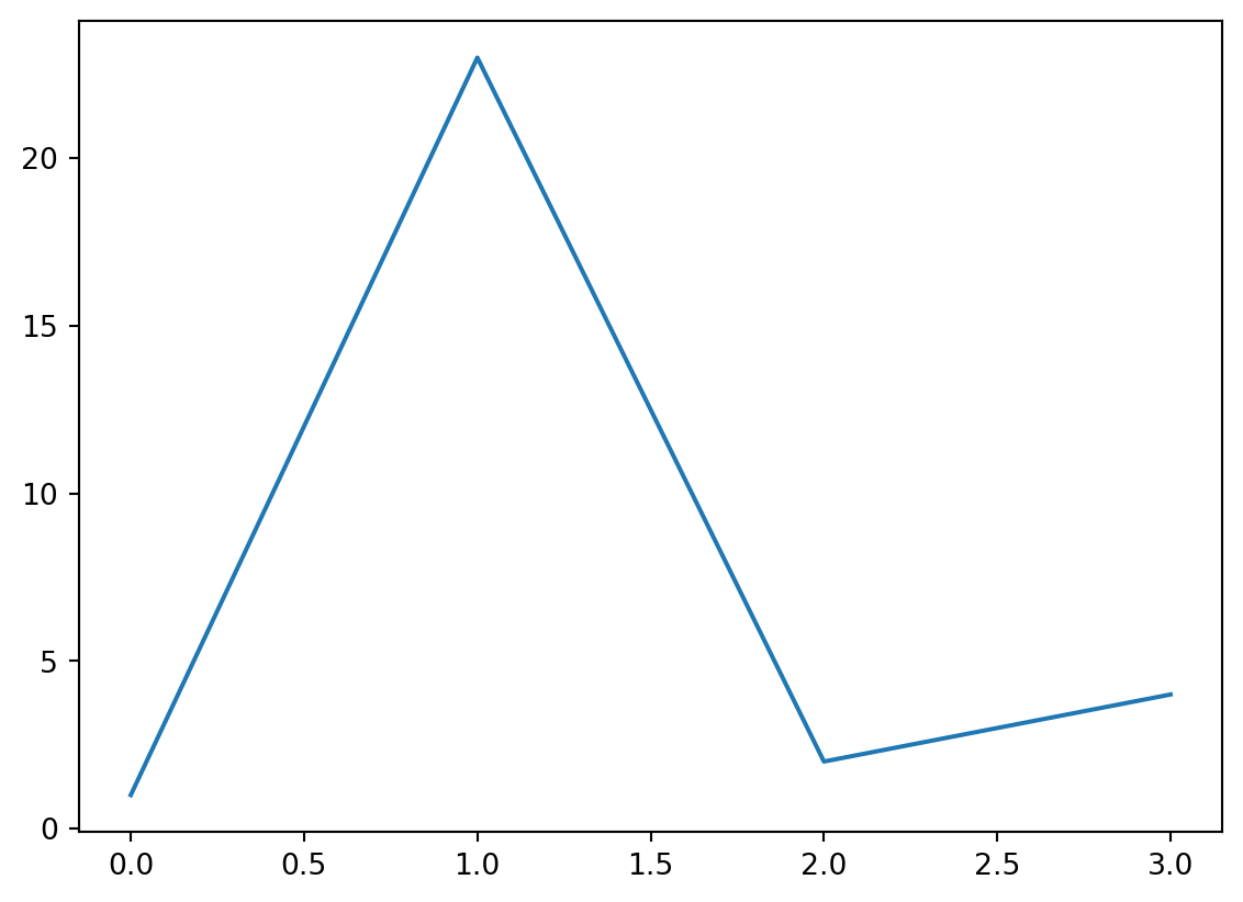 plt.plot([1,23,2,4])